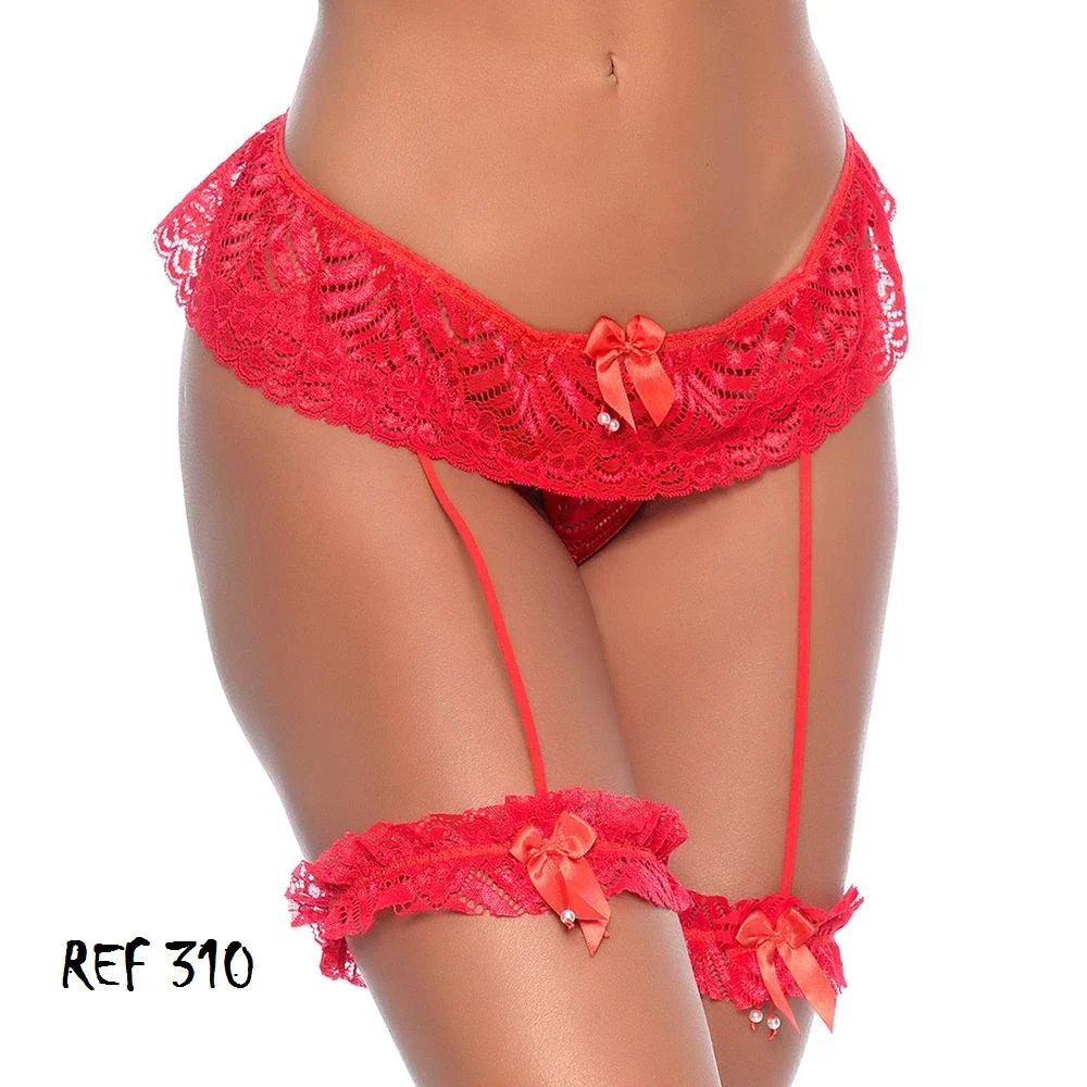 Calcinha Fio Dental Sexy Tanga Erótica Com Perneiras Cinta Liga Ref 310